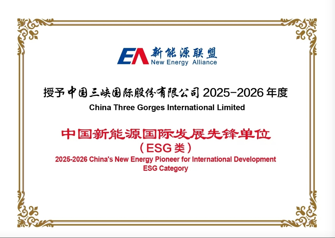 三峽國際連續三年榮膺“中國新能源國際發展ESG先鋒單位”